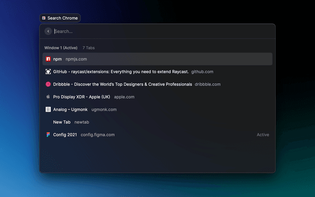 Search and open tabs and history in Google Chrome.