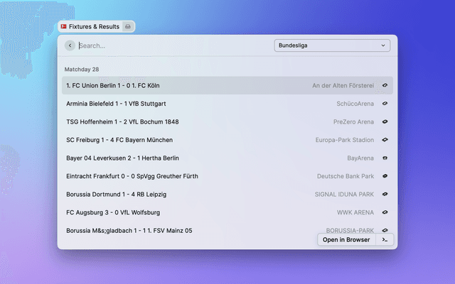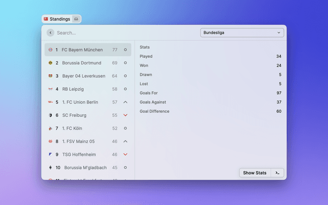View the latest Premier League tables, form guides and season archives in Raycast.