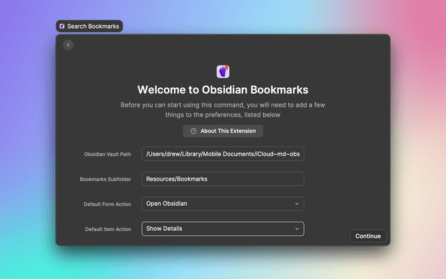 Obsidian Bookmarks lets you use Raycast and Obsidian as a place to manage your bookmarks.