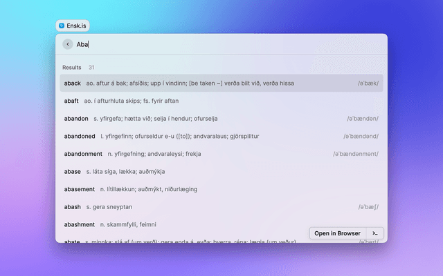 Search the Ensk.is English-to-Icelandic dictionary.