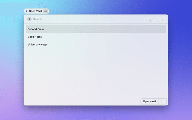 This command will show a list of all of your Obsidian vaults which you can open by pressing enter.